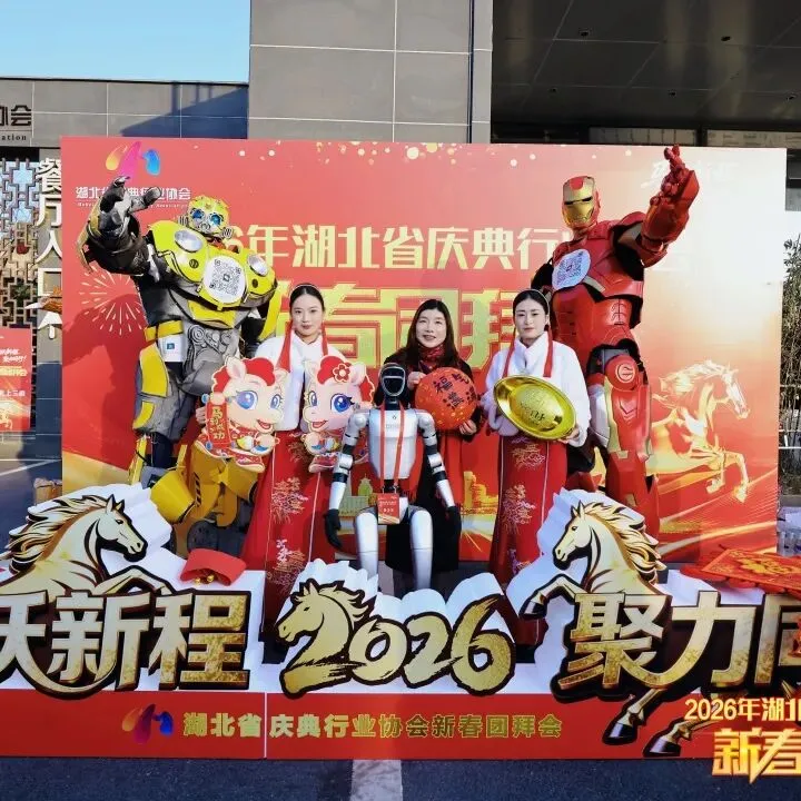 本次团拜会以“马跃新程,聚力同行”为主题,场地布置融合了传统年味与现代庆典元素,马跃奔腾造型寓意行业腾飞,智能机器人、人机穿甲互动展示增添科技感,更有专业互动摄影设备与4K高清转播车全程护航,尽显庆典行业的专业素养与创新能力,到场嘉宾、会员纷纷打卡拍照留念。