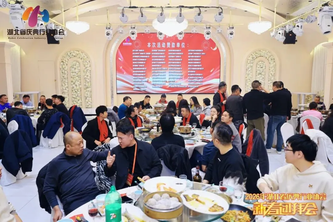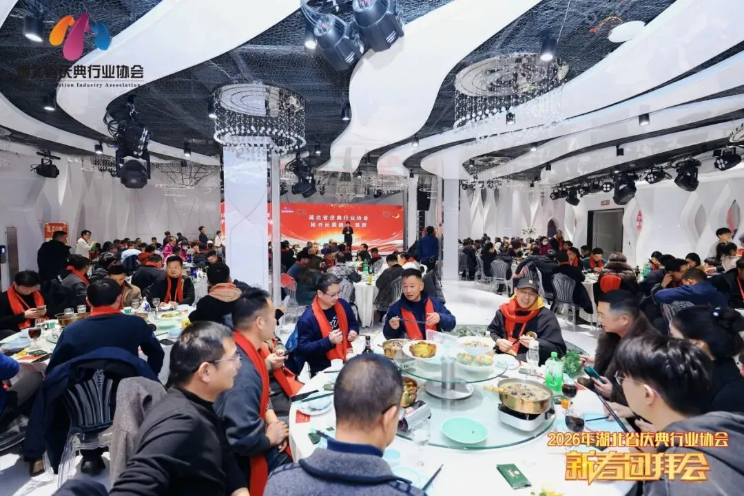 晚宴环节,美酒佳肴相伴,欢声笑语不断。会员们举杯共饮,畅谈行业趋势,交流合作机遇,现场氛围热烈而温馨。大家纷纷表示,此次团拜会不仅增进了彼此的情谊,更凝聚了行业共识,为新一年的工作注入了信心与动力。未来,将继续紧跟协会步伐,共享资源、携手共赢,以更优质的服务为荆楚大地的各类庆典活动添彩,让庆典成为传递文化自信、承载美好情感的重要载体。