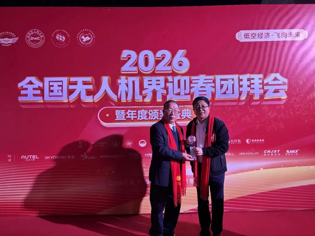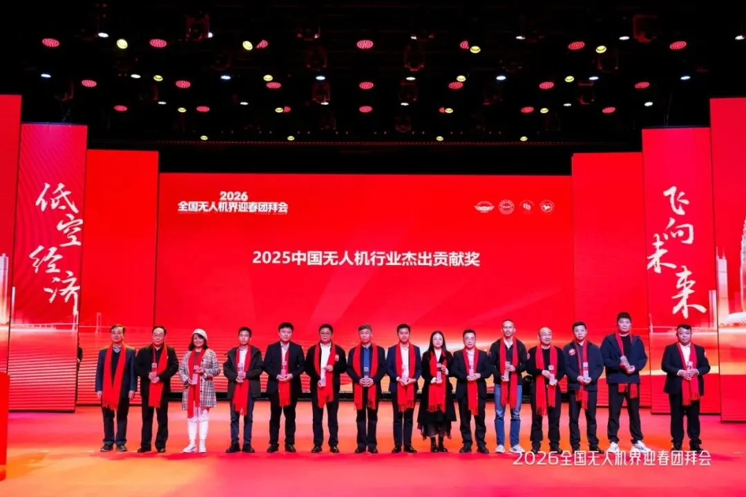 2026年1月8日,由深圳市无人机行业协会、世界无人机大会组委会主办,全国无人机协会合作互助平台、深圳市中安无人系统研究院、粤港澳大湾区低空经济研究院的支持下,主题为“低空经济·飞向未来”——2026全国无人机界迎春团拜会暨第十届无人机百人会在深圳世界之窗恺撒宫隆重举行。市无人机行业协会出席此次盛会,并荣获“2025年中国无人机行业杰出贡献奖”全国无人机行业系统逾千人齐聚深圳,共同感知低空经济背景下无人机行业发展无限机遇,发布综合评价结果、表彰优秀企业。