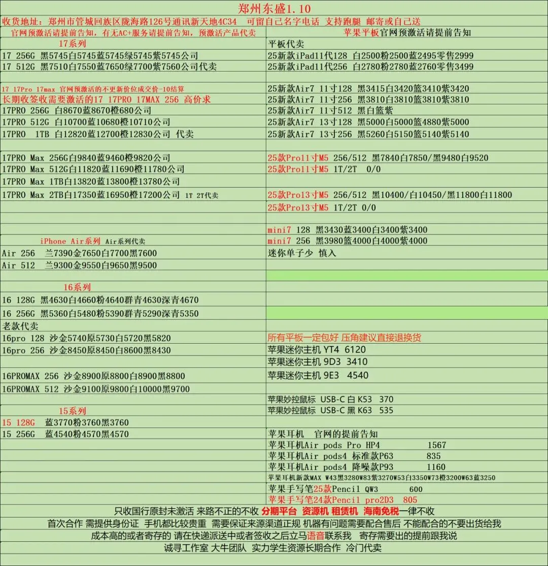 >郑州通讯新天地东盛1.10行情