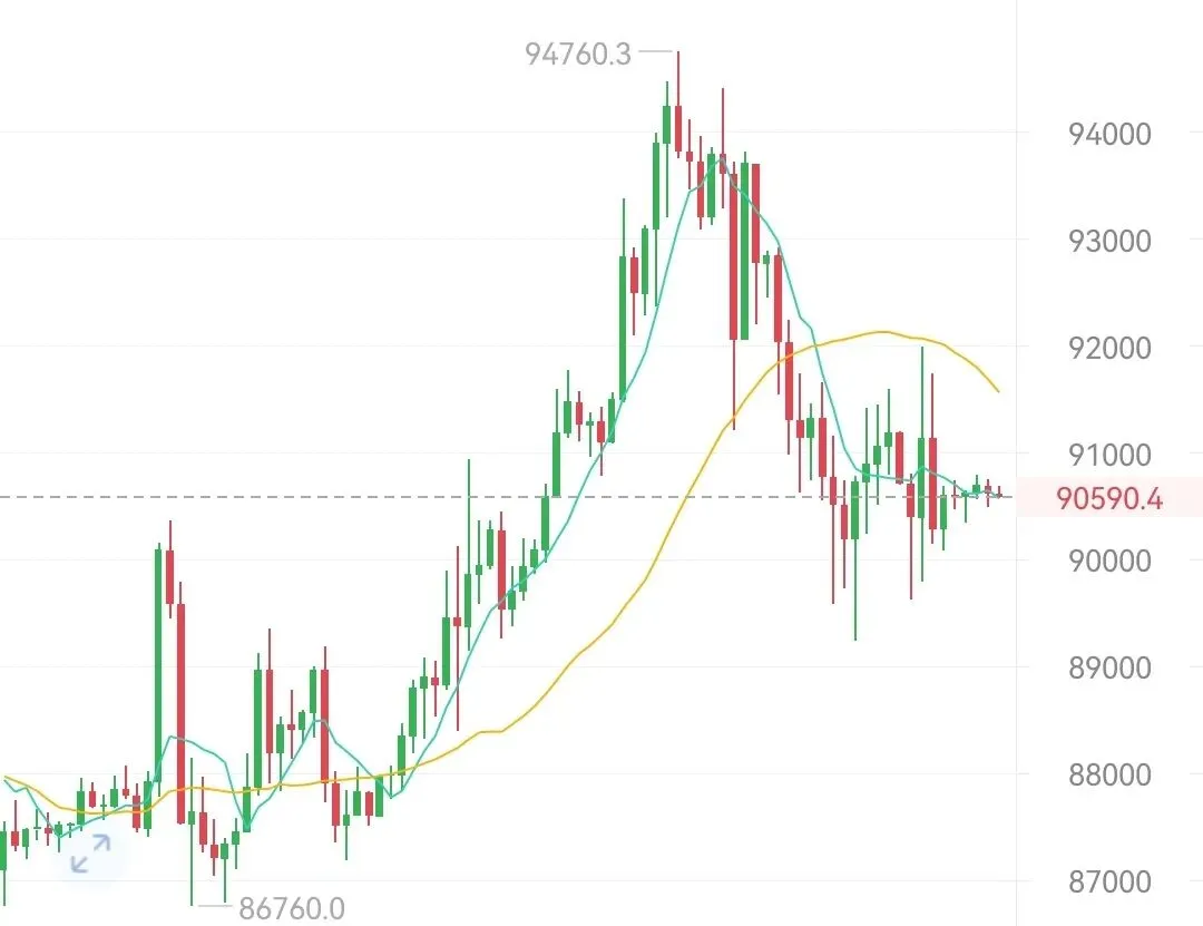 K线的红绿交替像人生的起起落落,暴涨时别被贪婪冲昏头脑,暴跌时别让恐惧夺走定力——真正的赢家从不是追涨杀跌的赌徒,而是守住本金、熬过长夜的长期主义者。近期市场整体偏低迷,始终处于震荡格局,行情走弱后便进入区间整理模式。昨天非农数据出炉,市场却没掀起太大波澜,多空双方陷入拉锯战,目前大饼价格在90600附近窄幅震荡。