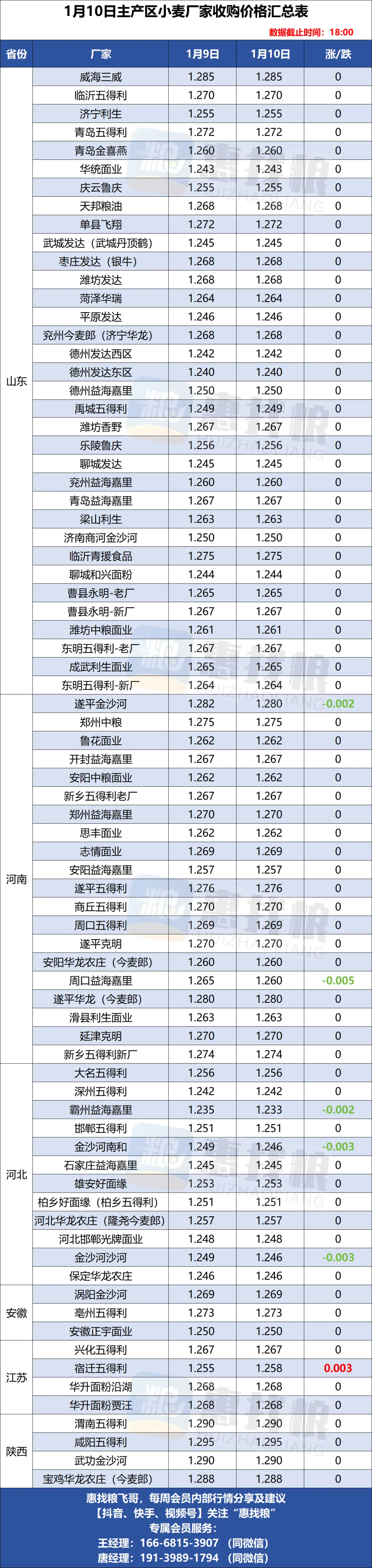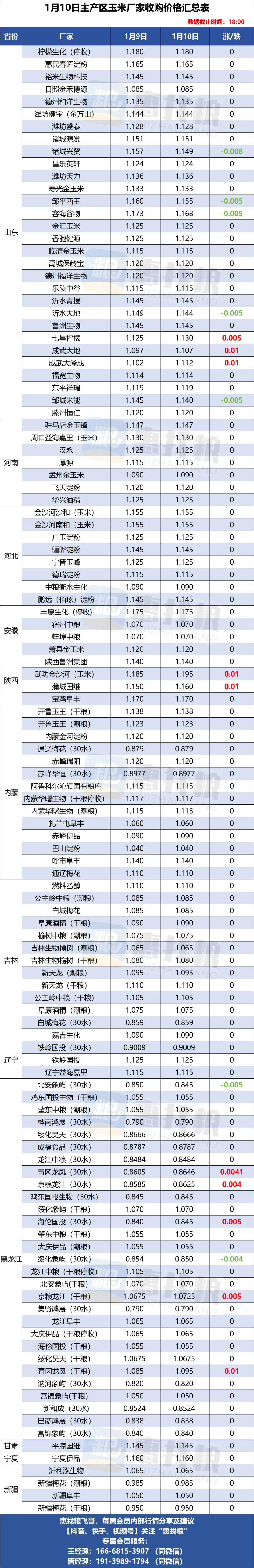 全国小麦/玉米厂家涨落行情汇总,1月11日,粮食更好卖,行情把握更准,找我加入惠找粮平台…