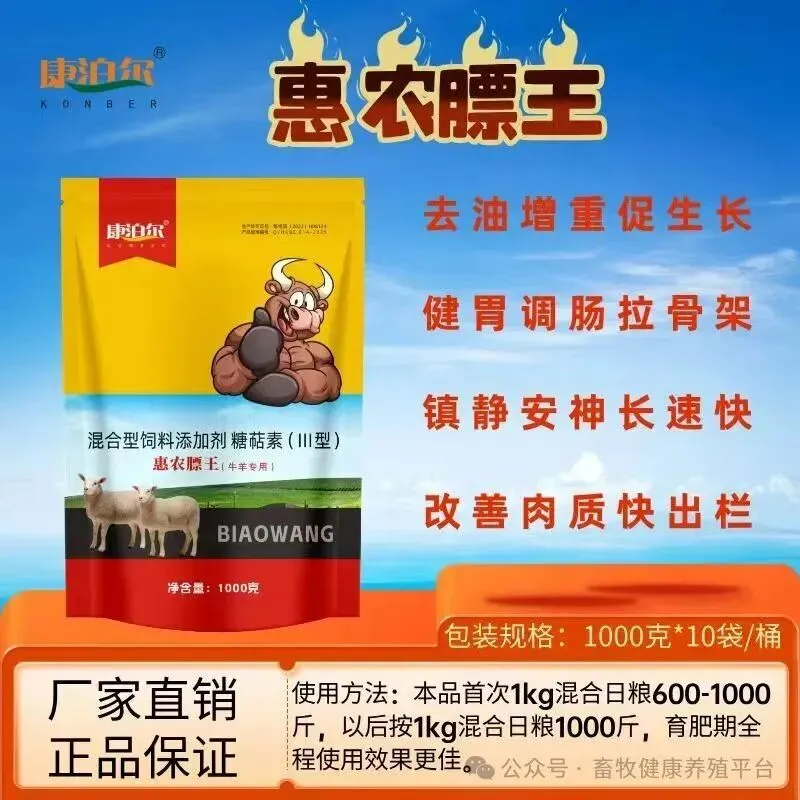 惠农膘王,是公司新研发牛羊催肥精品,在二十年催肥产品基础上,从产品丰尤壮→克能特安→惠农膘王,主要适用牛羊等反刍类动物。无论是小型家庭养殖还是大型养殖企业,都能通过本产品提高牛羊育肥效果,缩短养殖周期,增加经济效益!