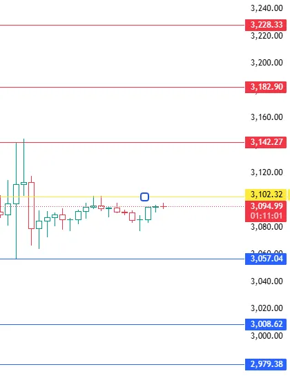 以太今天留意3102这个位置.1-2小时级别只有站稳这个位置上方行情才开始反弹.留意上方这几个压力位置附近3142-3183-3228