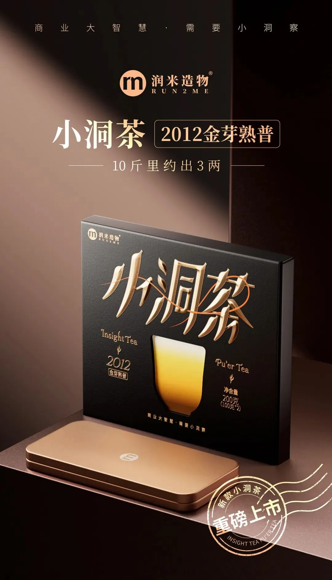 所以,【小洞茶·2012金芽熟普】在整体设计上,依旧延续了“商业大智慧·需要小洞察”的理念。茶杯中的茶汤,一泡一泡慢慢沉淀的渐变画面,就像是洞察力在知识的提炼、学习、沉淀中慢慢变得愈加深厚。