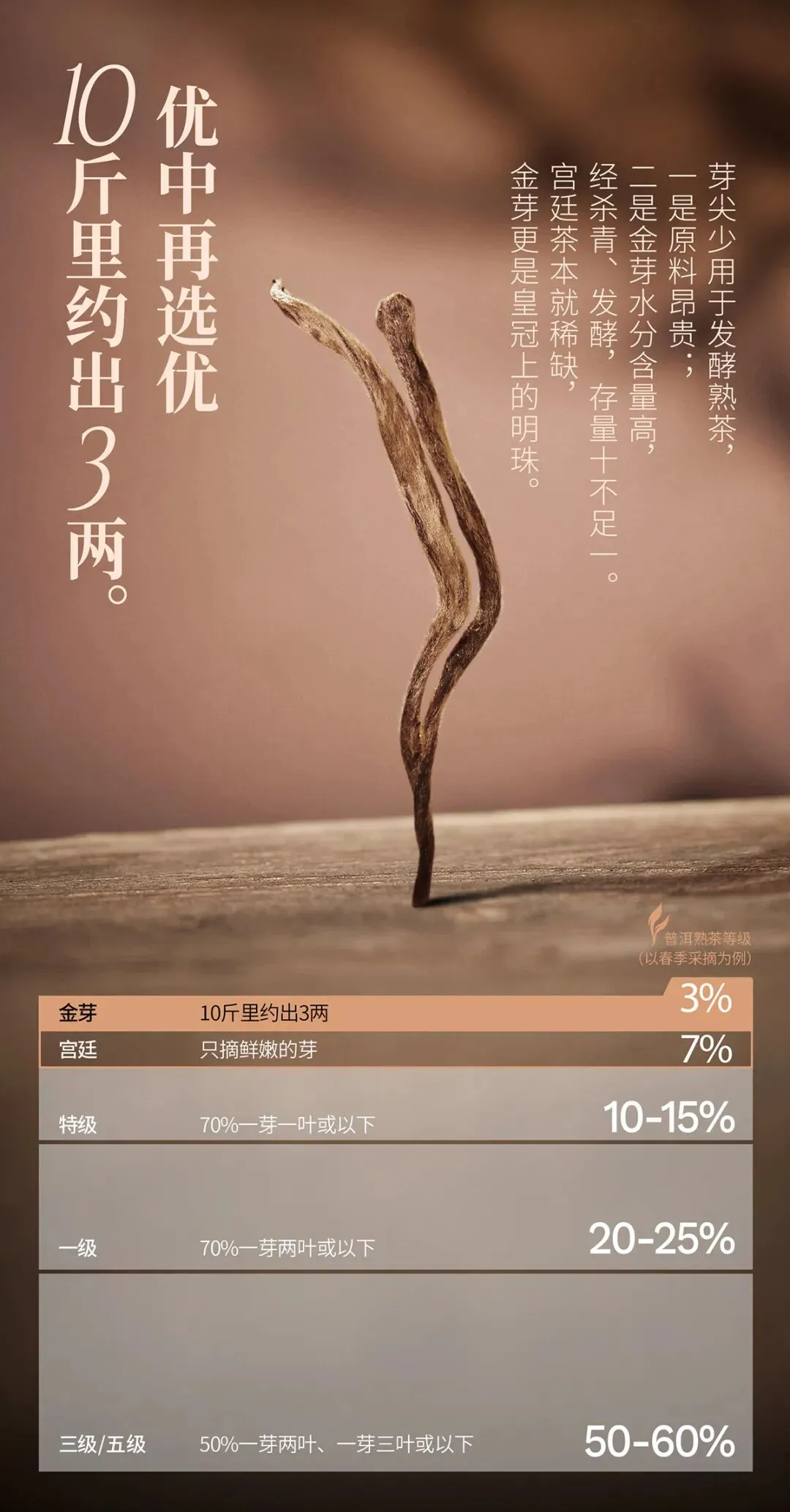 而金芽呢?是在原本就“少”的宫廷级别里,再选出“更少”的“芽尖”,只有3%左右。