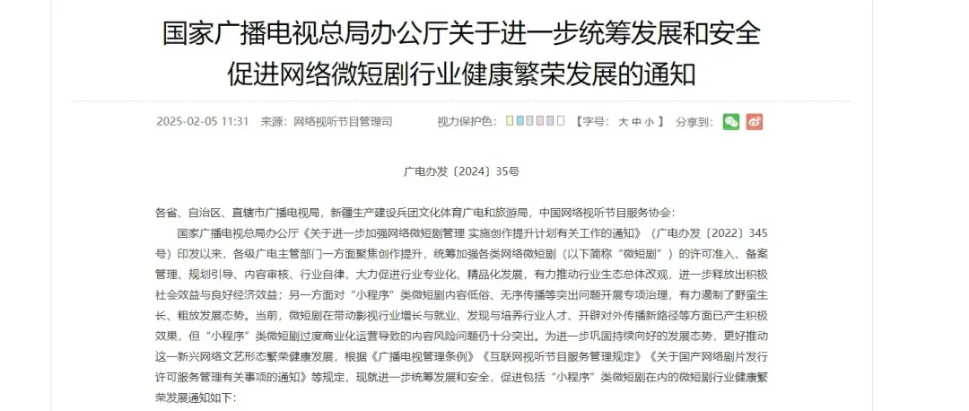 高速增长下,短剧监管同步收紧。2025年广电总局明确微短剧“分类分层审核”“白名单”“总编辑负责制”三大制度,将其正式纳入影视内容规范体系。