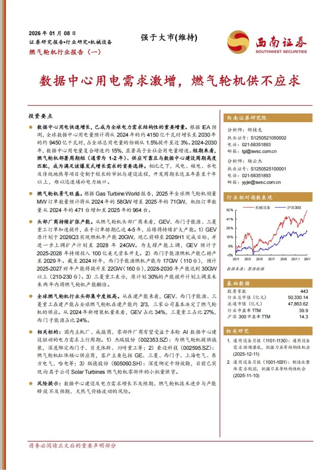 『研报』燃气轮机行业报告(一):数据中心用电需求激增,燃气轮机供不应求