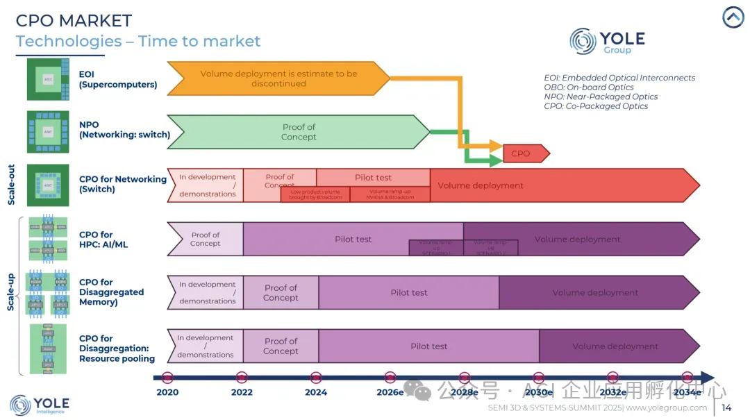 2020-2034年CPO市场规模预测(来源:Yole Group)