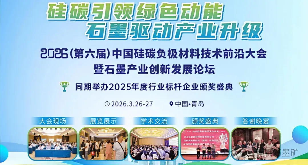 当前,全球新能源产业蓬勃发展,硅碳负极材料作为锂离子电池核心关键材料,其技术创新与产业化进程直接影响新能源电池性能升级;石墨产业作为基础材料支撑领域,正面临结构优化、技术迭代与高质量发展的双重使命。为搭建产业链、创新链、资金链深度融合的高端交流平台,破解技术瓶颈、促进资源整合、推动产业升级,经多方筹备,南墅石墨矿定于2026年3月举办“2026(第六届)中国硅碳负极材料技术创新大会暨石墨产业高质量发展论坛”。诚邀国内外相关领域科研机构、生产企业、上下游应用端、投资机构及行业专家学者参会,共话产业发展新机遇、共谋技术创新新路径。欢迎各单位积极组织参加,现将有关事项通知如下: