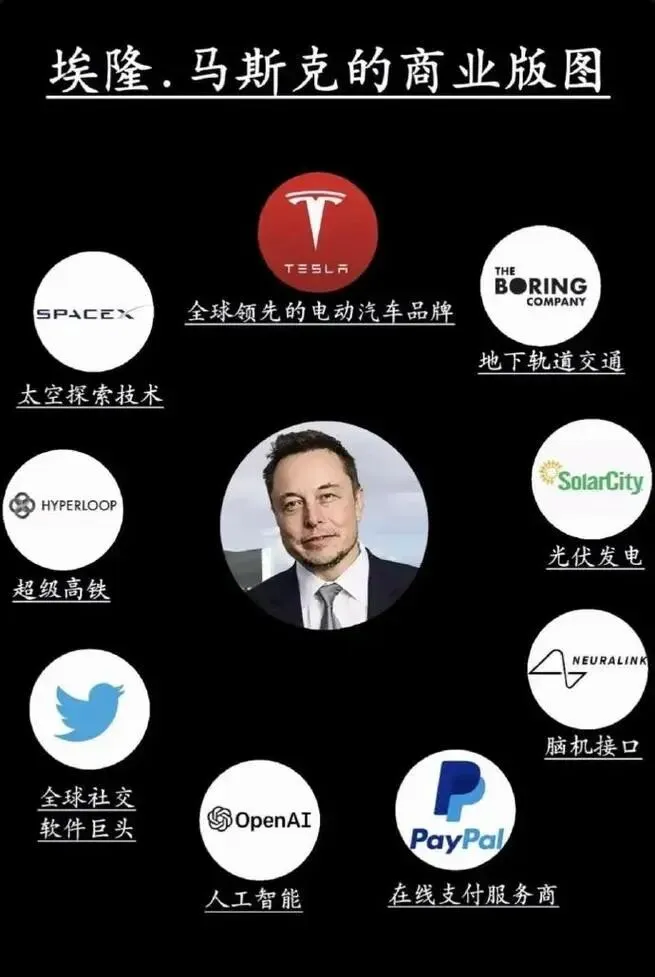 相信去年至今,粉丝们已经认识到如今我们的行情与全球科技巨头们关系相当紧密。换个角度看,现在的科技主线和马斯克这位当代科技大佬息息相关。他不仅pk掉了老牌美国科技大佬,还引领了新一轮的工业革命。从我们引以为傲弯道超车的新能源汽车到人工智能落地的重要产业人形机器人,甚至到如今的商业航天大行情都是由马斯克引领!但马斯克的上线远不止如此,下图有马斯克现有的产业布局,几乎涵盖了如今最新最前沿的科技,甚至他现在开始着手布局自己的半导体工厂。真是一个把效率拉满的科技大佬,把第一性原理发挥得淋漓尽致,值得我们学习!