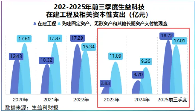 然而,到前三季度,公司在建工程一举攀升至18.72亿元,相关资本性支出也来到17.01亿元的高水平,可见其扩张的野心。