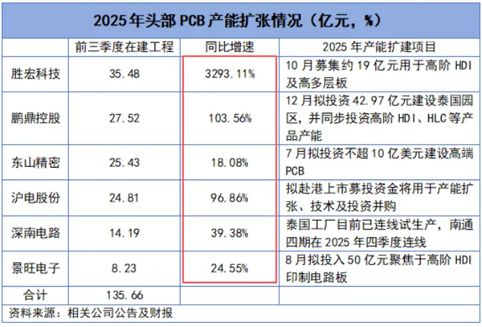 2025年下半年以来,为承接全球云厂巨额资本开支,景旺电子、鹏鼎控股、胜宏科技等一线PCB大厂启动对高多层板、高阶HDI扩产计划。