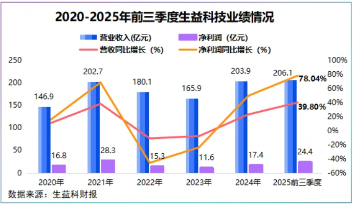 2025年前三季度,生益科技营收创下206.1亿元的高水平,净利润达到24.43亿元,同比增幅高达78.04%,不论是成长速度还是绝对值已赶超2024年全年。