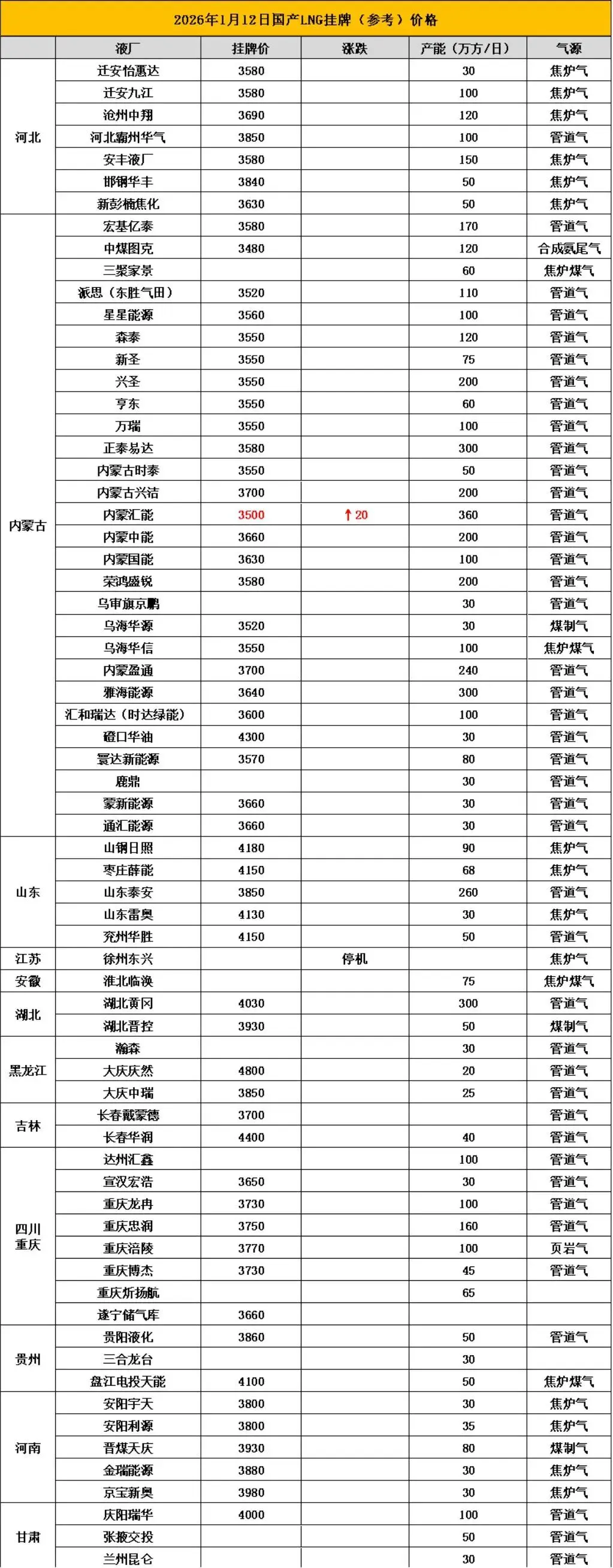 为了方便朋友们及时了解市场动态,掌握市场行情,把握市场机会。亿慧云天然气每天为大家提供行业新闻,国内LNG挂牌价格,本价格信息只做参考,具体提货价格请与工厂销售联系。(当天调价见底下留言)
