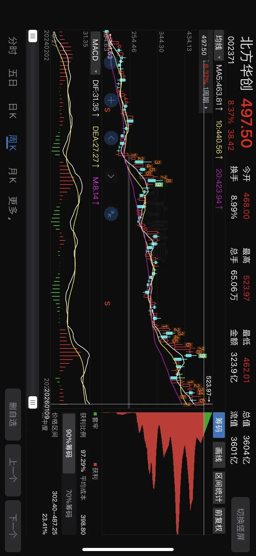 放量突破之后周 k 金叉形态。一般来说,机构票放量突破,是有大机构在建仓,买盘很大造成的放量,且换手率并不高,也就意味着新增的多方进场~