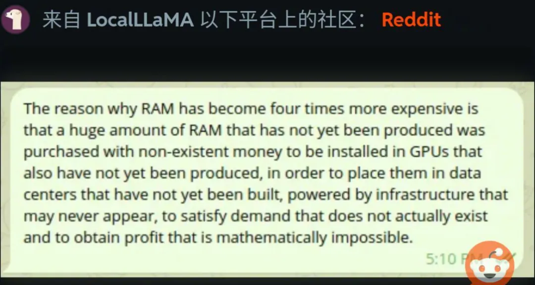 周末和基金经理朋友闲聊,提到老登行业,说现在很多偏价值风格的经理,已经在失业边缘了。1、我说曹名长的持仓,像是准备打股灾。结果评论区的读者怼我说,还用股灾吗?曹名长的产品这三年来已经走出了独立股灾行情。2、本账号在基金组合时代创办的组合,被跟投的读者强烈要求换掉价值风格产品,因为不赚钱,属于浪费资金成本。3、当时刚刚流行基金经理开社交媒体账号,有基民跑到某消费基金经理的账号评论留言说,你不懂消费,你选的股票不行,我来教你怎么选消费股。如今五年时间过去,老曹已经离开行业,价值投资的大旗已经被蓝小康接住,而市场风格再度回到了极致成长。本账号的运营团队在回顾这些观点的时候,时常觉得心有戚戚:我们不应该对一个风格下定论,也不应该对某个基金经理下定论。因为投资的时间很长,我们常常更加关注眼前的行情,而忘掉了大的周期,陷入短期的叙事中,而这个叙事可能又是长期的。翻译:内存价格之所以涨了四倍,是因为有人用根本不存在的钱,买下了大量尚未生产出来的内存,准备装进同样尚未生产出来的 GPU 里,再放进尚未建成的数据中心,依赖可能永远不会出现的基础设施供电,以满足实际并不存在的需求,从而获得数学上不可能实现的利润。