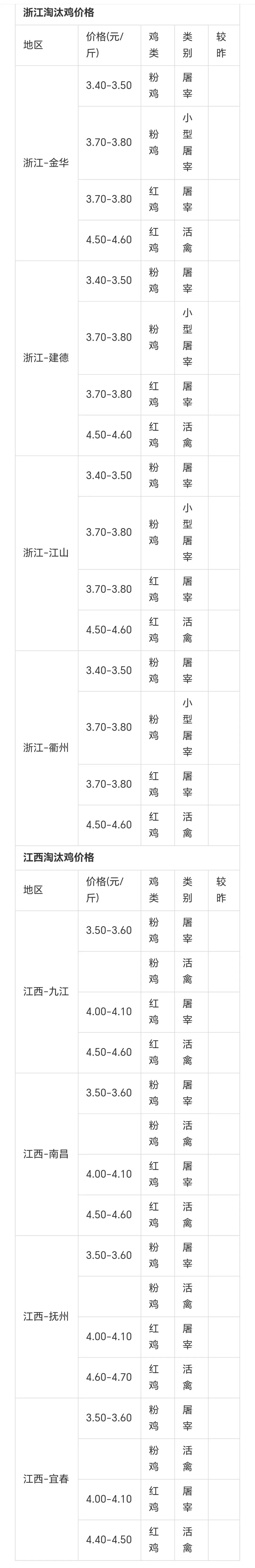 >元月12日各地淘汰鸡价格
