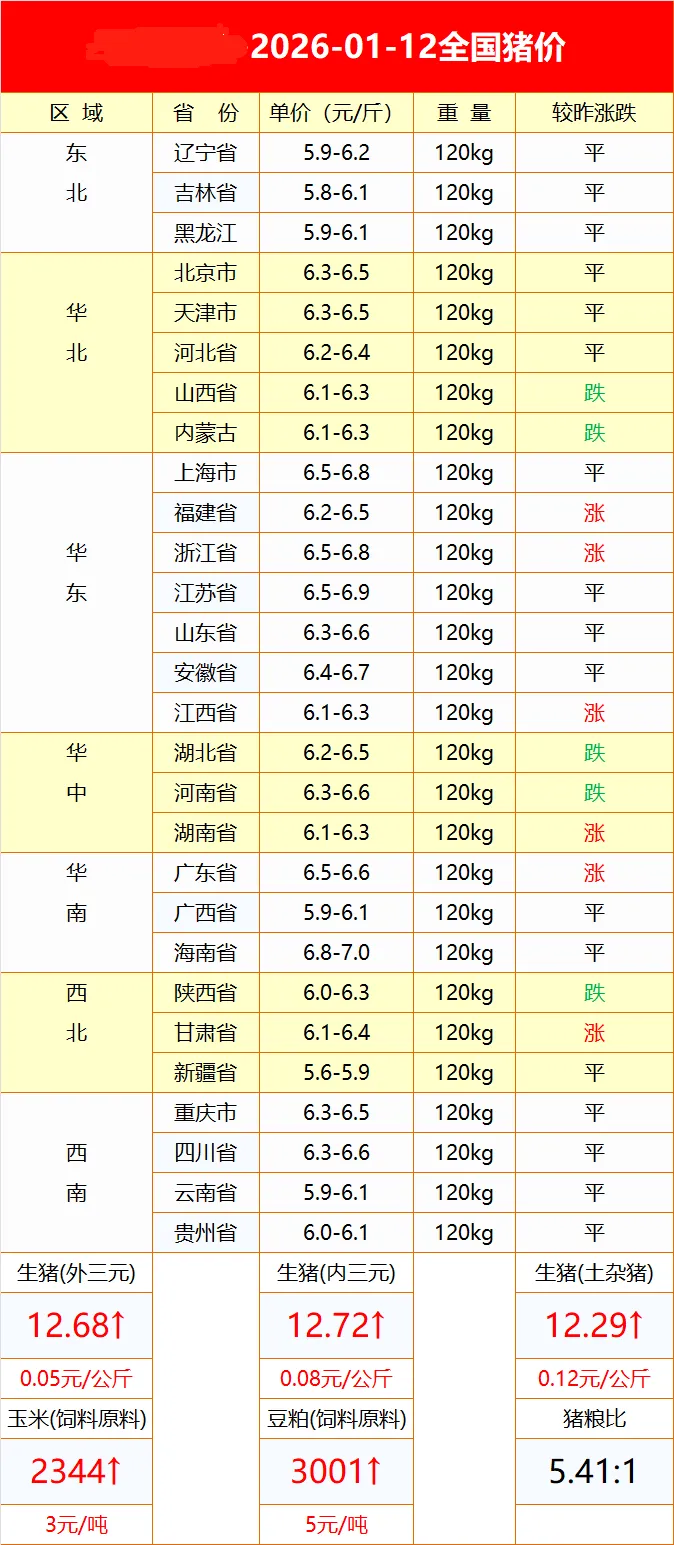 2026年1月12日星期一,鸡蛋行情描述↓ ↓