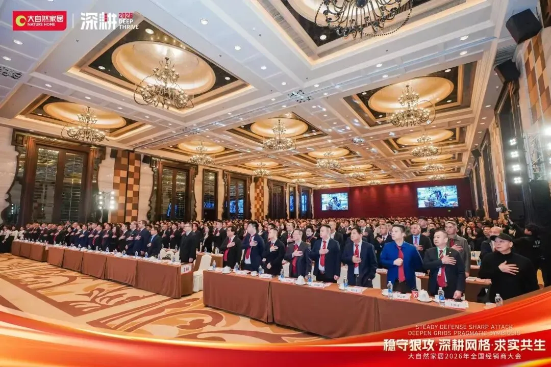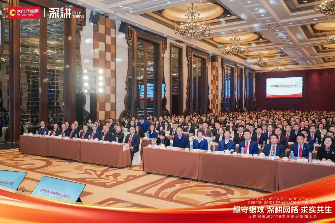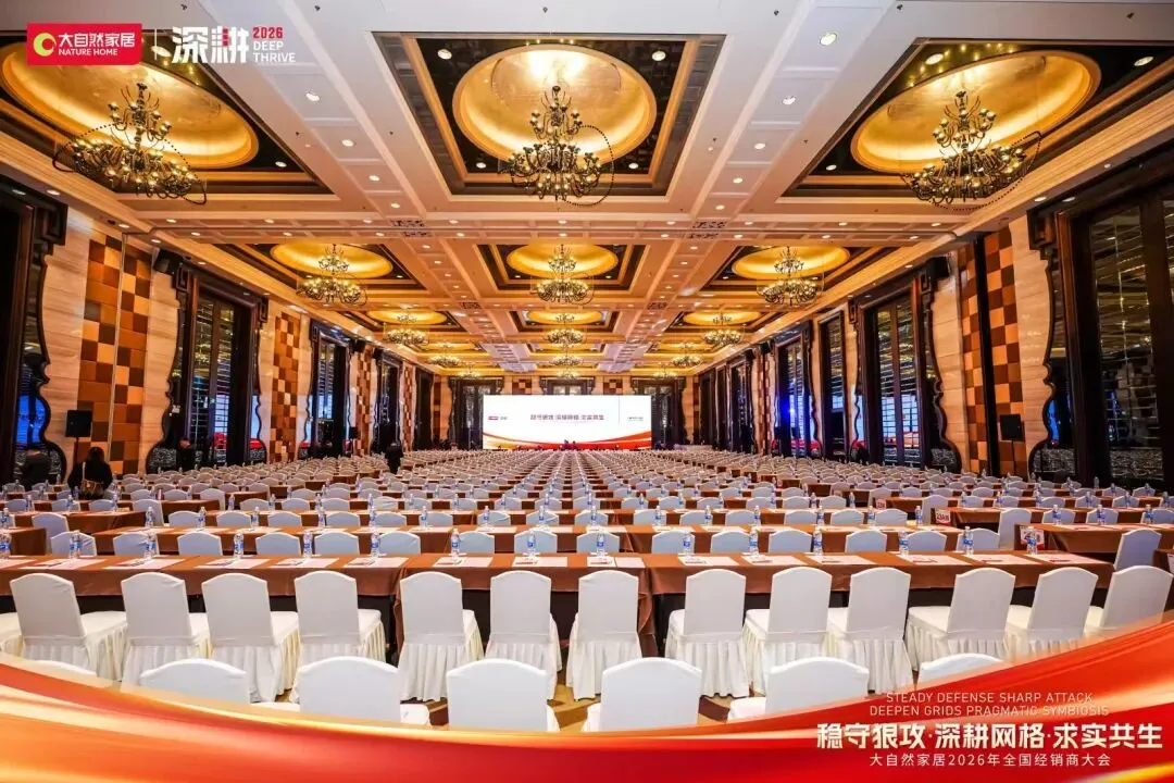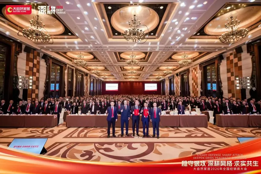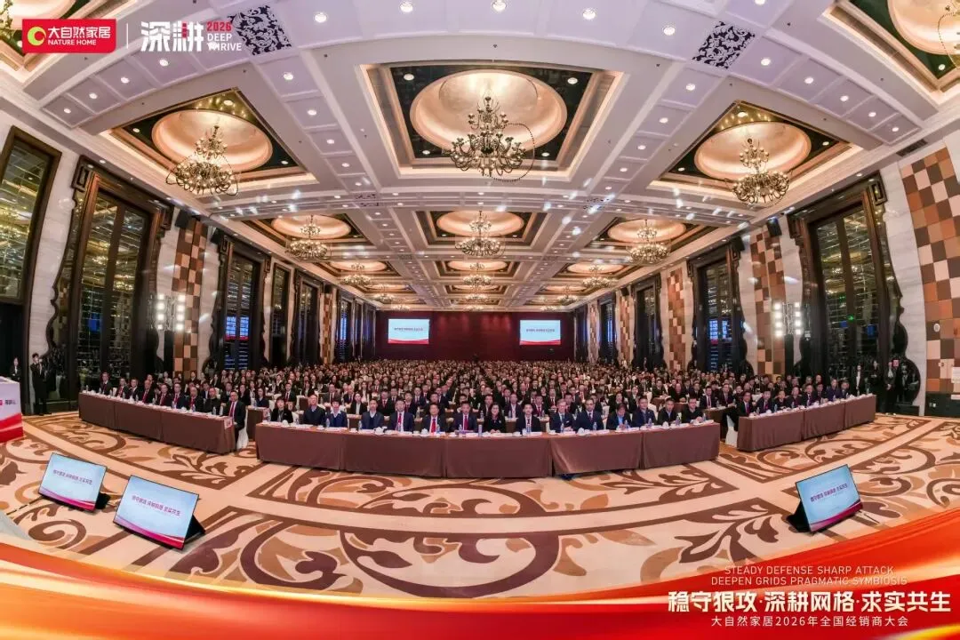 2026年大自然家居全国经销商大会以“稳守狠攻,深耕网格,求实共生”为核心主题,重磅揭晓地板业务年度战略布局。这份规划不仅是大自然地板锚定新一年增长的行动纲领,更像一面镜子,照见了家居建材行业存量竞争下的核心生存逻辑,为所有行业人敲响了发展警钟:粗放扩张的时代已成过去,唯有精准深耕、价值共生,才能在红海中站稳脚跟。