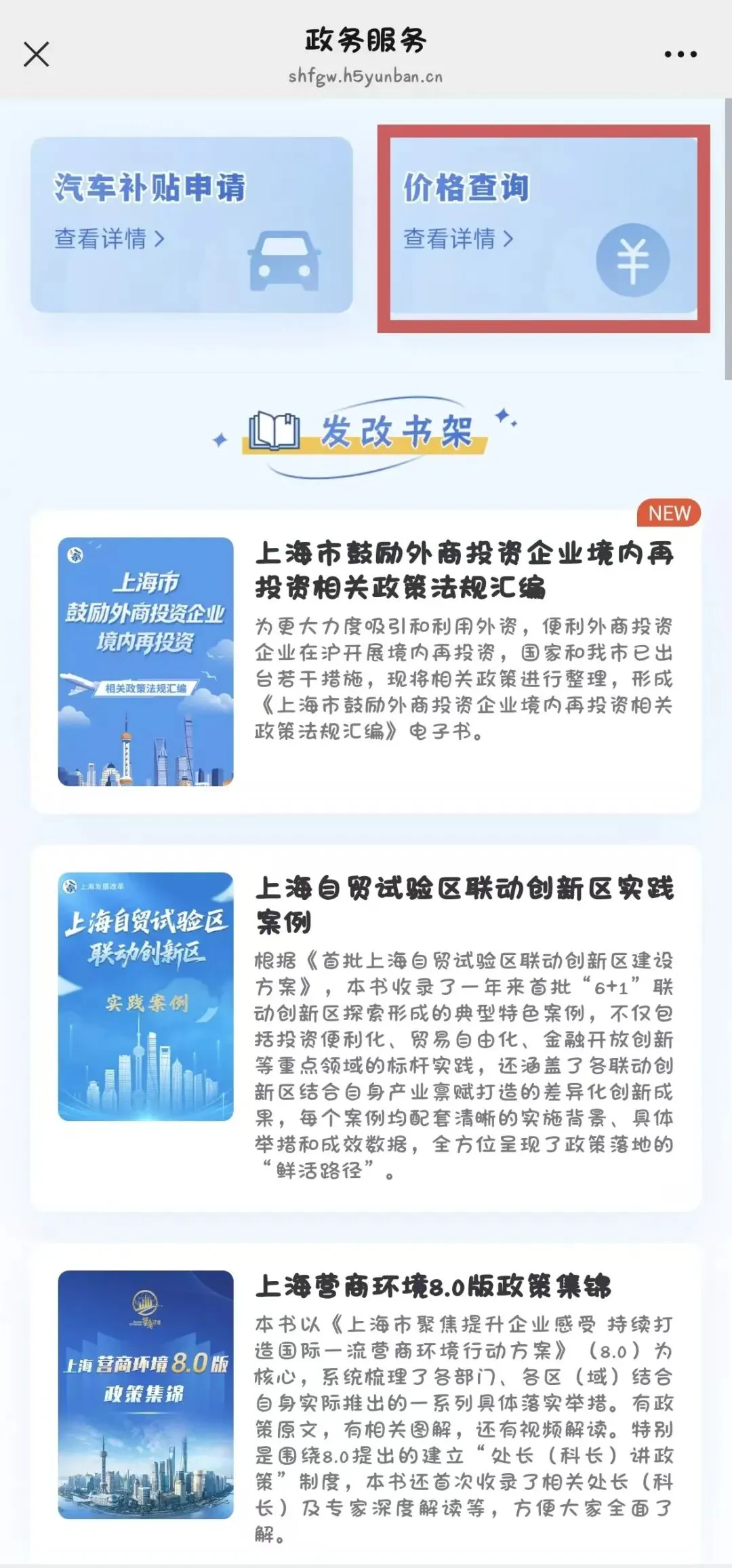 2、关注我委公众号“上海发展改革”,点击“政务服务-价格查询”查看全部内容