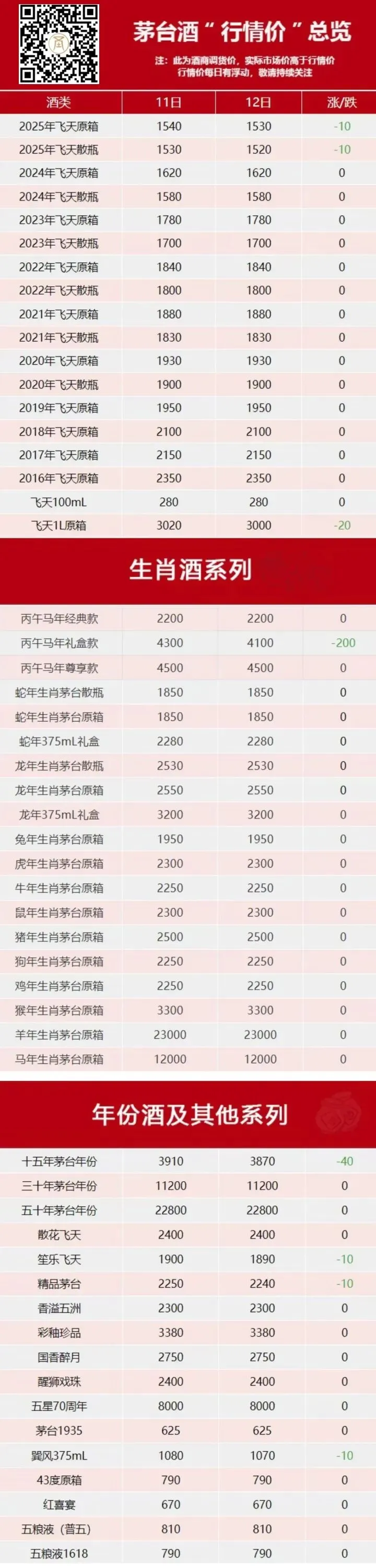 1月12日最新行情价▼行情价是指酒商之间的调货价,不同地方调货价有几十块的差异属正常现象。批发价/零售价=行情价+运营费用+仓储费用+物流费用+合理利润