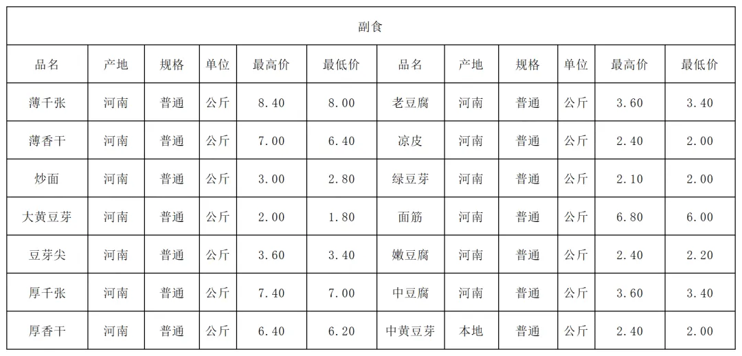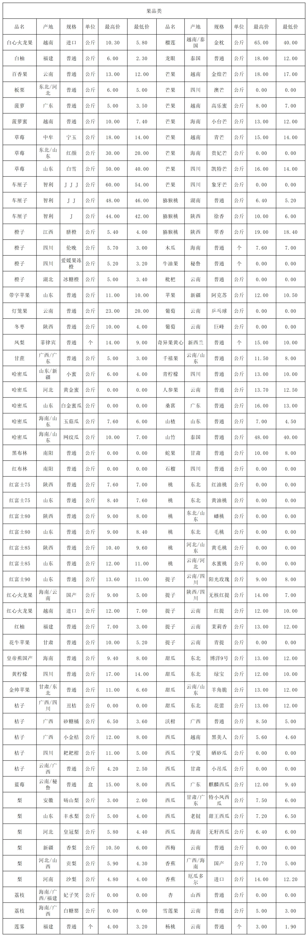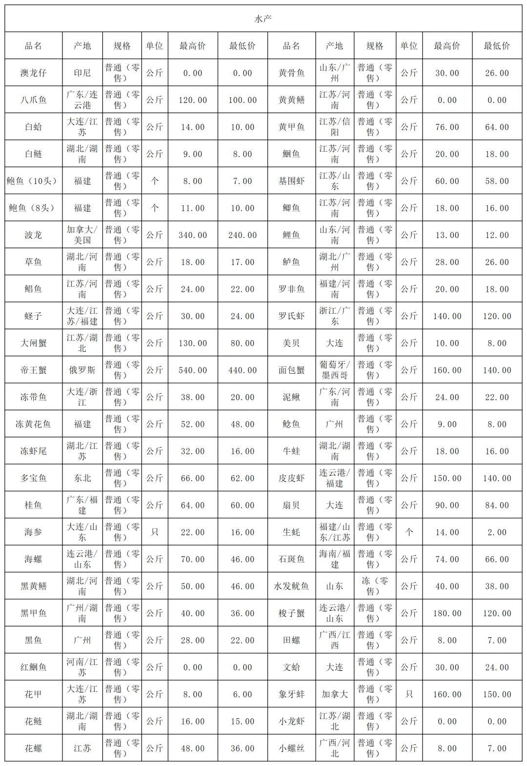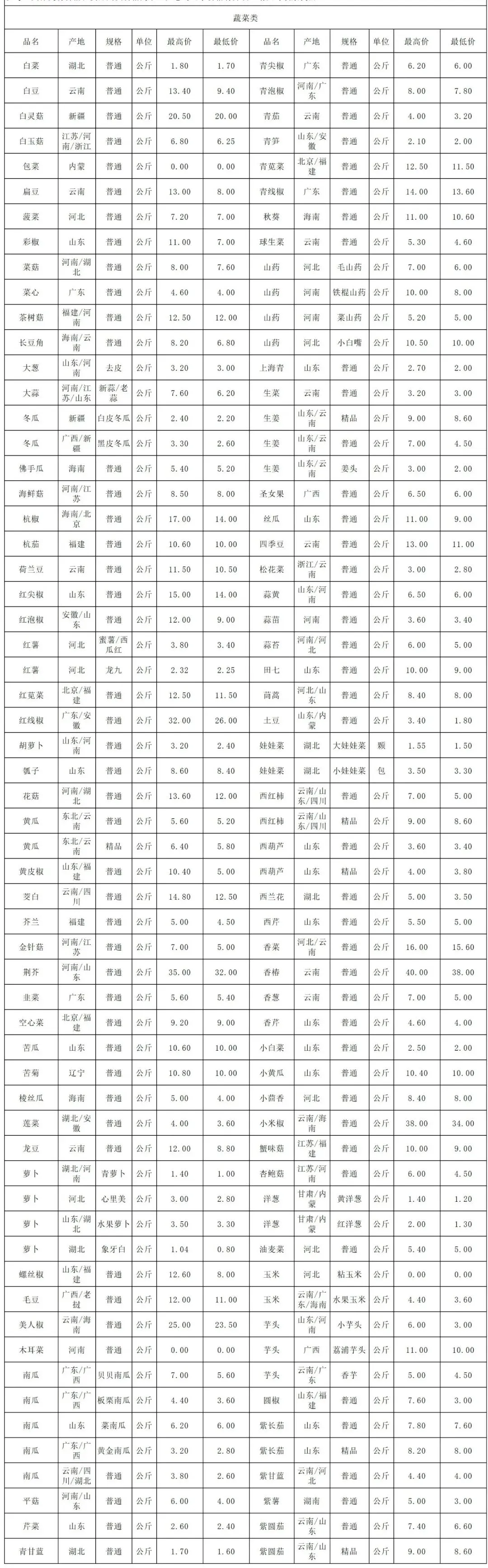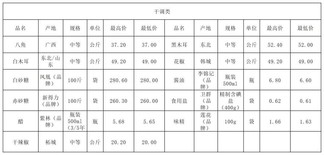 1月12日价格公示