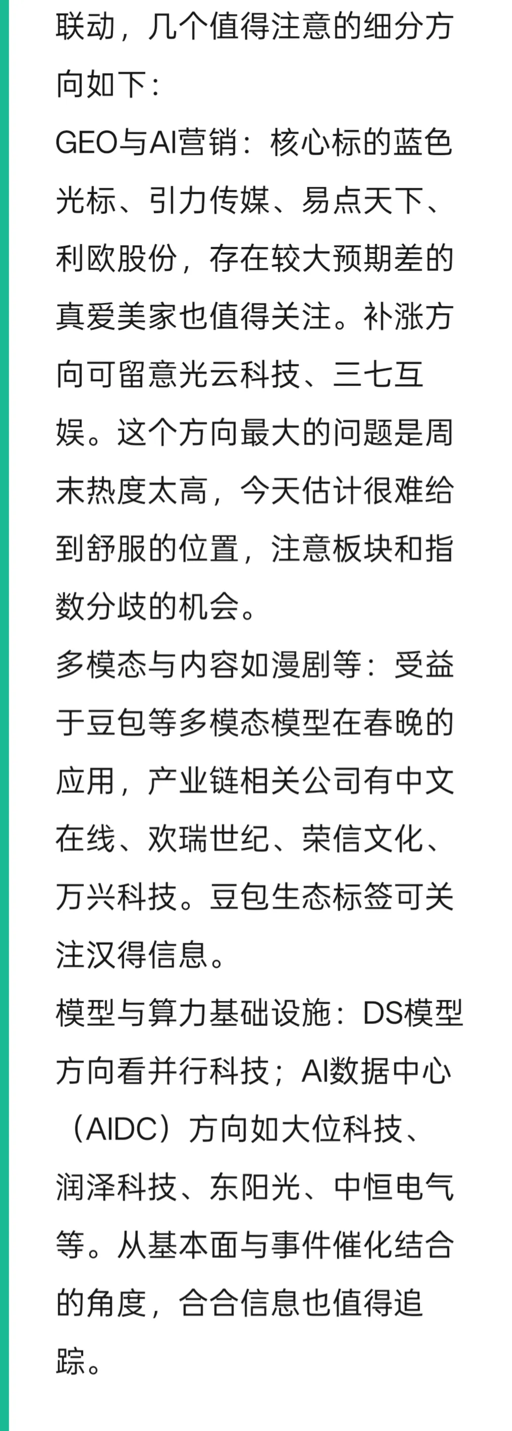 回顾之前的行情,AI应用的大行情往往就是跟着国产模型的超预期表现起来的。所以,在节前这个时间段,趋势看起来是比较明确的。