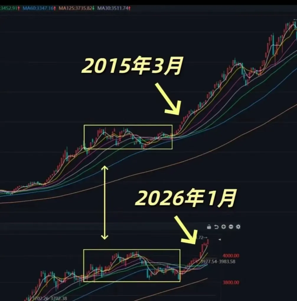 其中23亿用来给猪圈装修,10亿用来归还银行贷款。问题是,股价从最高点,已经跌了80%,给参与定增的机构投资者,还打8折股价。猪肉股真坑,明明可以躺着收息,结果还要从股民手里抢钱。特朗普有关格陵兰的言论升级,警告称不排除通过“来硬的”, 以确保获得这一丹麦自治领土。面对特朗普的威胁,欧洲一些国家在英国和德国的牵头下,讨论在格陵兰建立军事存在的计划。直接带动,晚上伦敦金上涨1.69%,伦敦银上涨5%,伦铜上涨 1.97%。8、今天这个图比较火,说这轮行情越来越像2015年了。要不是压着大金融、中字头这些,上证可能早就上5000点了!大家都知道,2015是杠杆下的疯牛,4000点往上拉了2个月多,然后就见顶A杀了。现在大家都说像2015,你心里是不是有点慌?