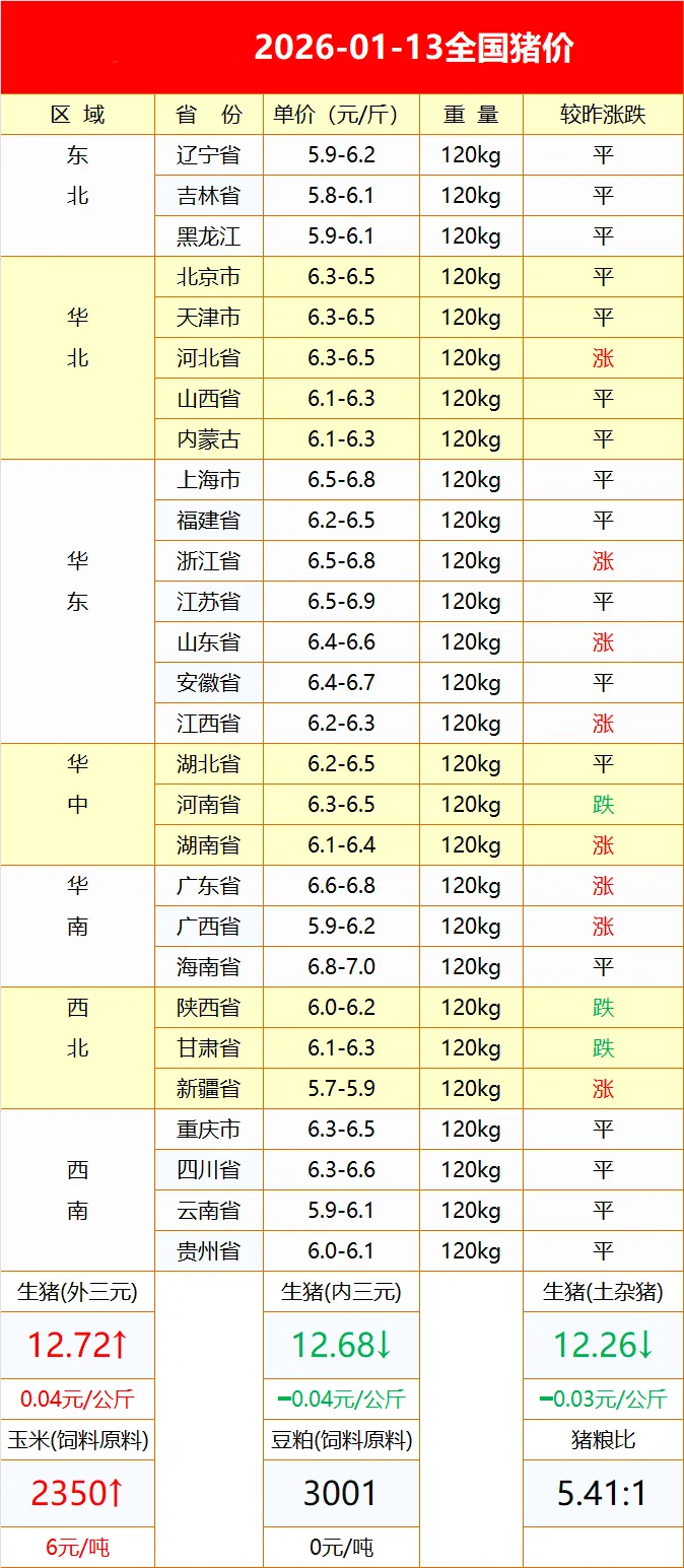 2026.1月13号最新玉米豆粕价格!