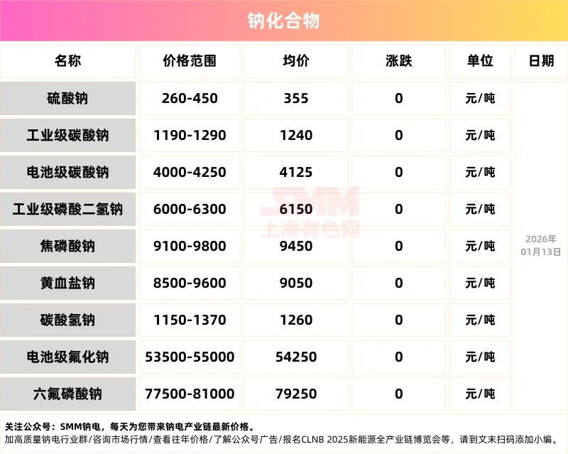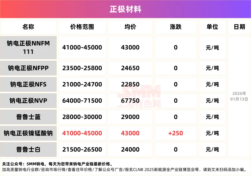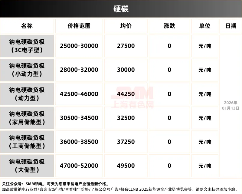 每日获取最新钠化合物、前驱体、正极材料、硬碳、电芯、电解液价格