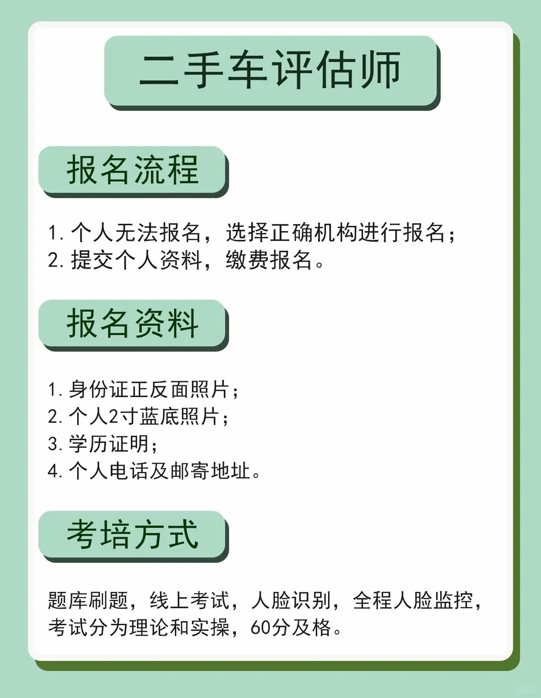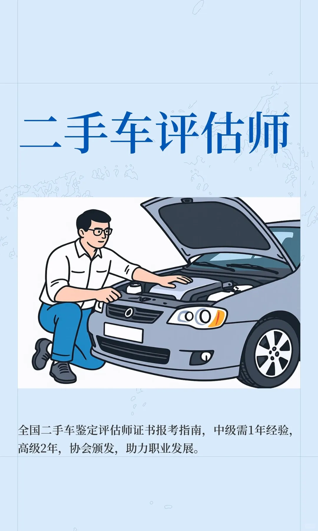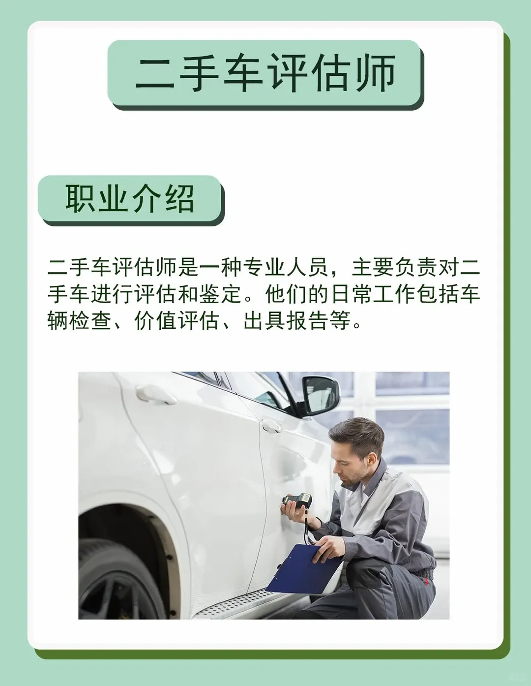 今天就为大家整理了二手车评估师证书的报考指南+就业方向,想入行的朋友赶紧收藏起来!