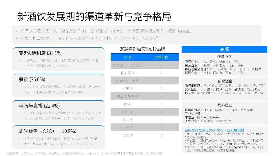 新酒饮的渠道结构也在发生深刻变化,从传统的层级分销模式向多通路并行模式转变。便利店、零食量贩、即时零售、电商等新兴渠道,成为新酒饮销售的重要阵地。