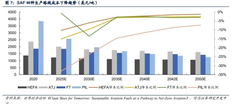 航空业净零目标驱动 SAF 需求,价格高位运行倒逼多技术 路线降本增效