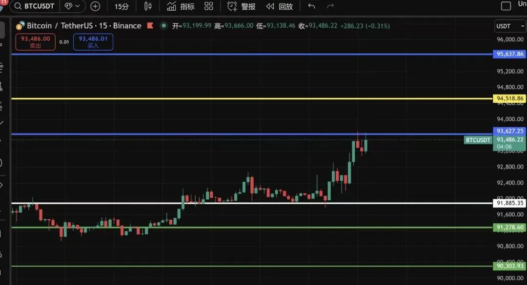 大饼夜间关注91880,站稳这个位置,多头还是在的,压力位93600~94500~95600,空单入场位置,不要梭哈,不要格局,