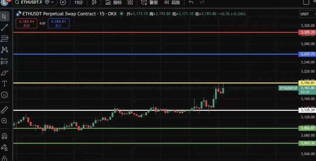 以太坊夜间行情3135,站稳这个位置,多头依旧还是在的,压力位3195~3257~3305,空单入场位置位置,不要梭哈,不要格局,