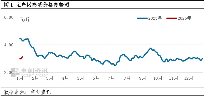 卓创资讯表示1月初主产区鸡蛋价格开启上涨模式,日均价由2.99元/斤涨至7日的3.21元/斤,累计上涨0.22元/斤,累计涨幅7.36%。鸡蛋价格走高主要受需求转好和供应压力减轻双重利好拉动。