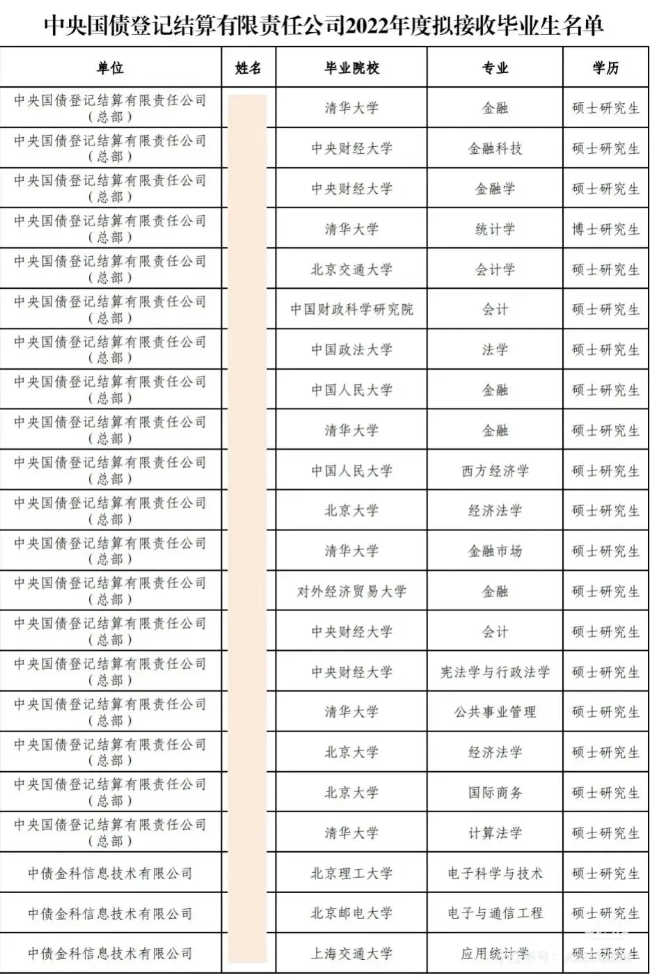对外经贸3人,清华、南开各2人,其余高校均1人