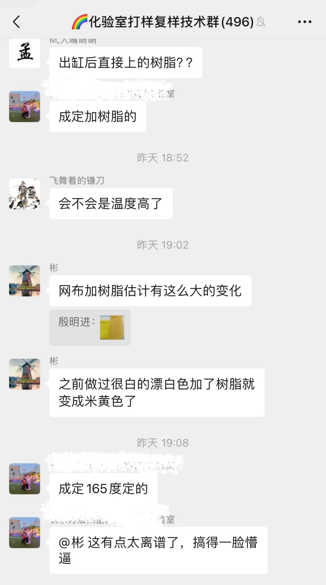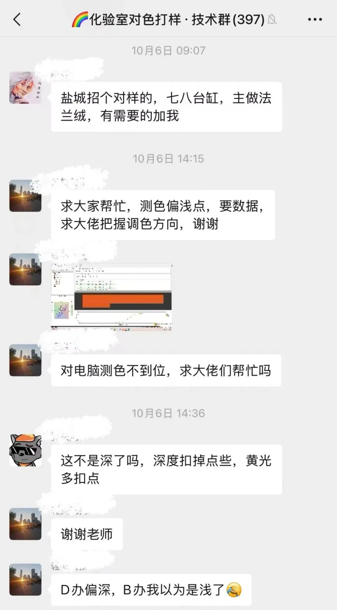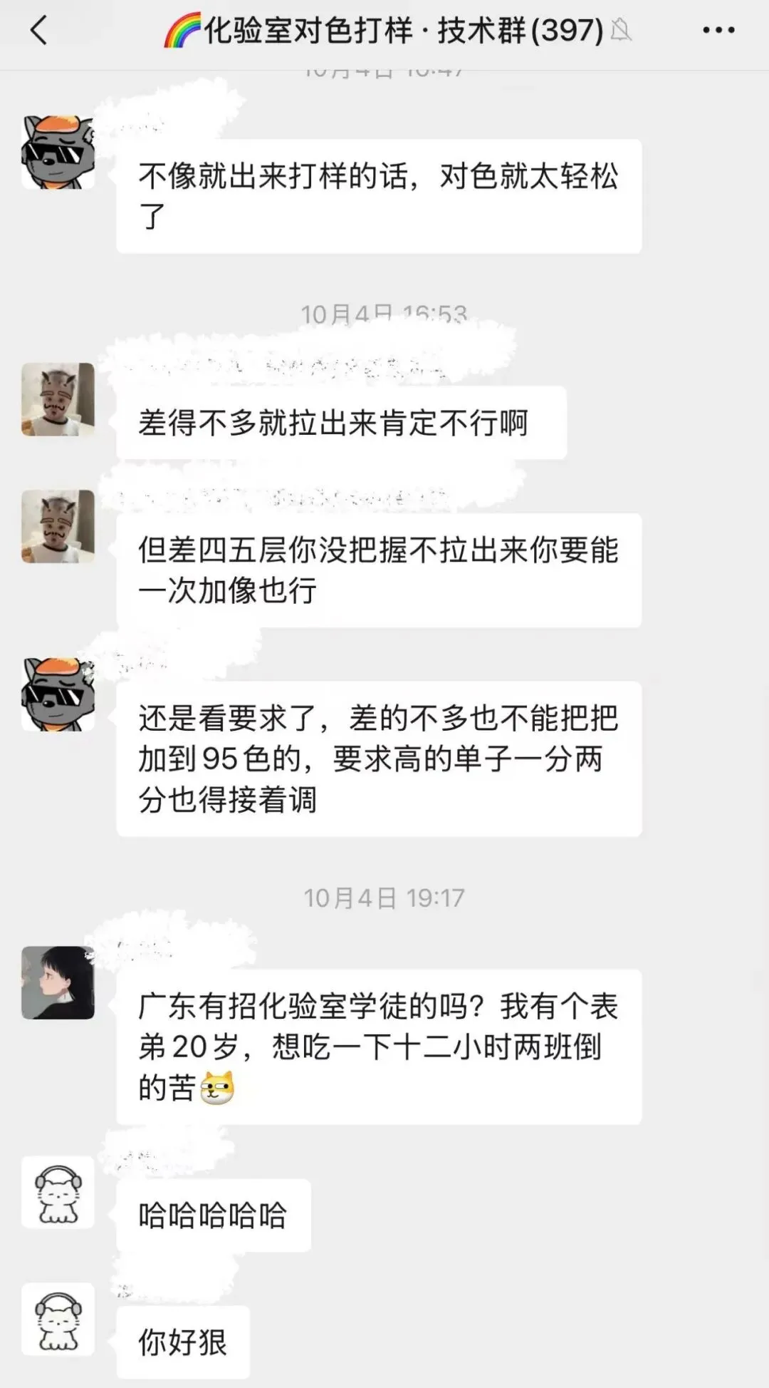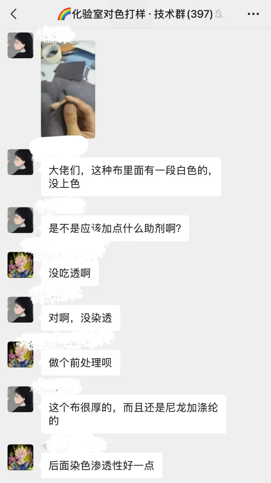 印染厂化验室群很热闹