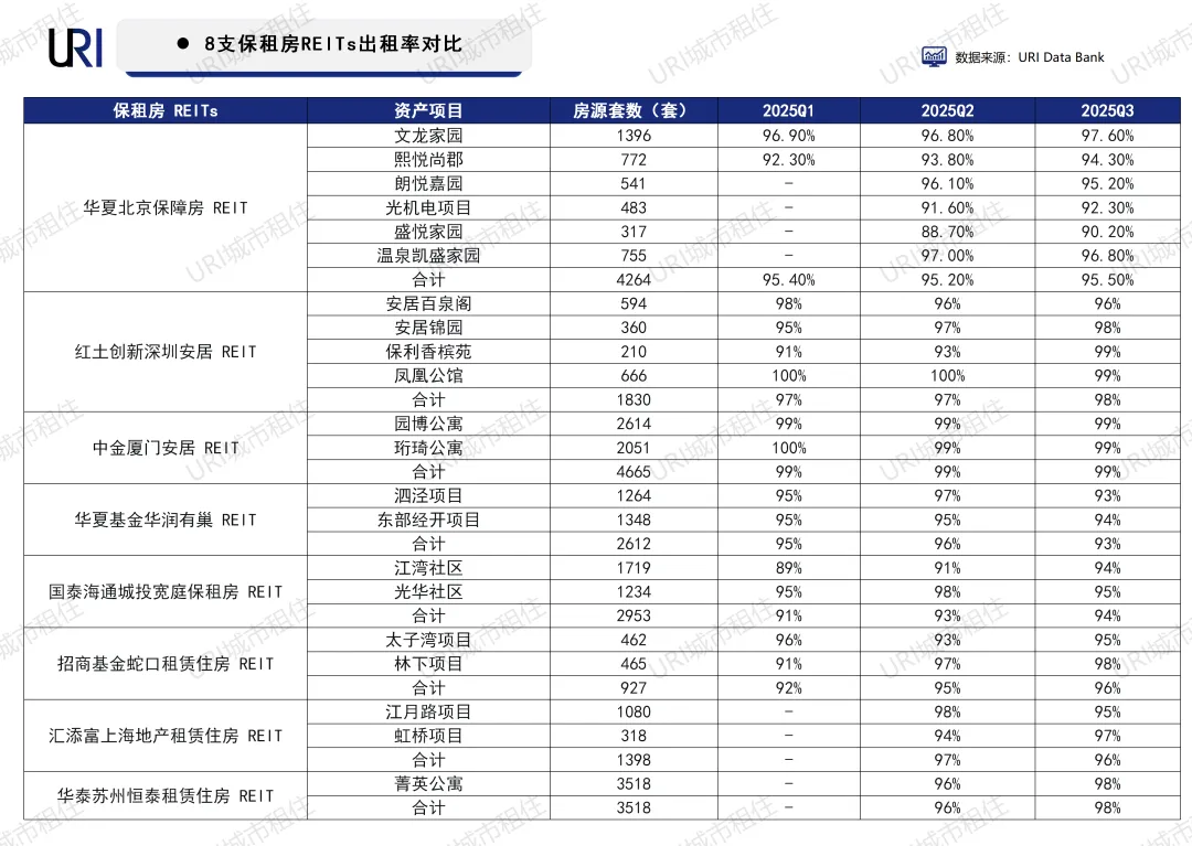 URI研究看来,出租率数据验证了保租房资产的抗周期特性,但项目间表现的差距也清晰地表明,在相同的市场环境下,资产的具体区位、产品定位及运营机构的精细化管理水平,正成为决定其表现优劣的核心变量。