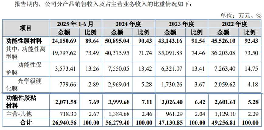 公司是一家专注于功能性涂层复合材料的研发、生产与销售的高新技术企业,主营产品包括功能性离型膜、功能性保护膜、光学级硬化膜等功能性膜材料和功能性胶粘材料,广泛应用于消费电子、新型显示、汽车及新能源电池等领域。
