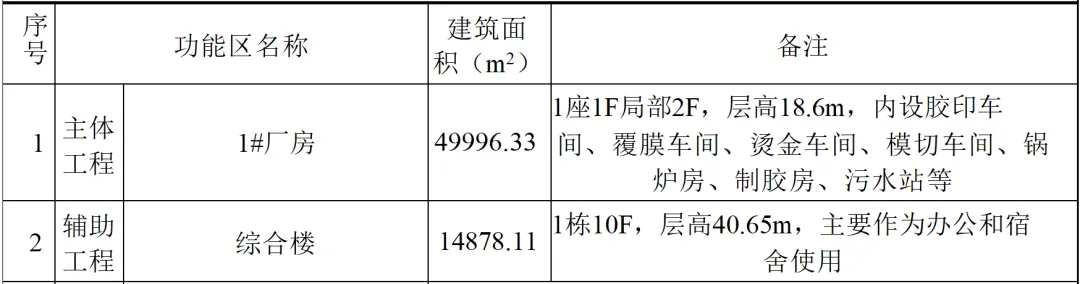 扩建项目建成后,年印刷成品纸板为20000万平方米,详情如下: