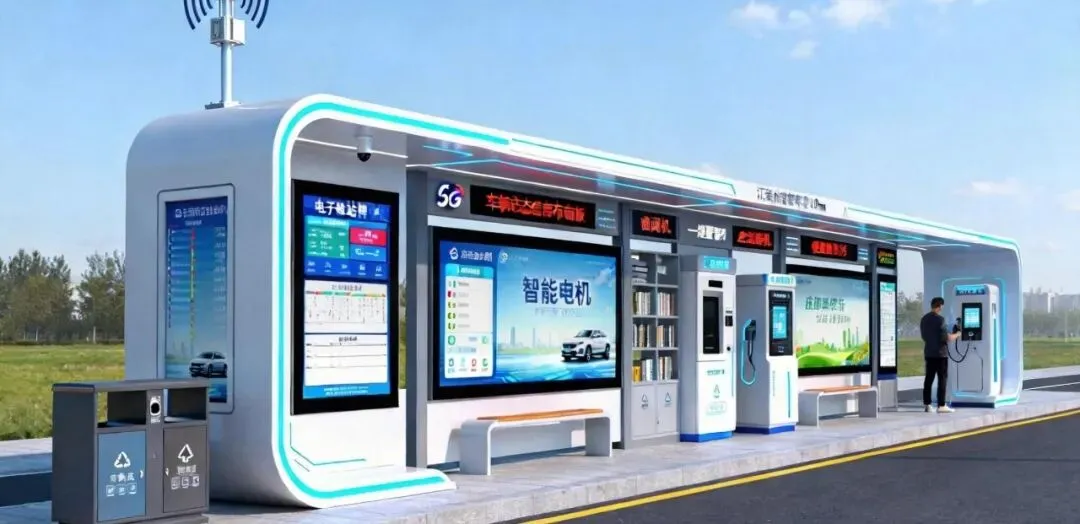 上海智慧亭模块化试点:通过标准化组件快速组合功能模块,适配不同道路条件,并集成充电、信息屏等服务。