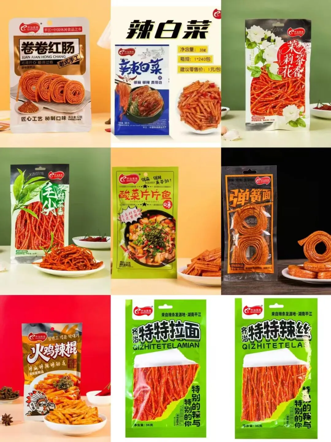 主要卖0.5-4元辣条系列,适合各大渠道,电商平台,系统连锁店,流通,商超,出口,可贴牌,不支持一件代发