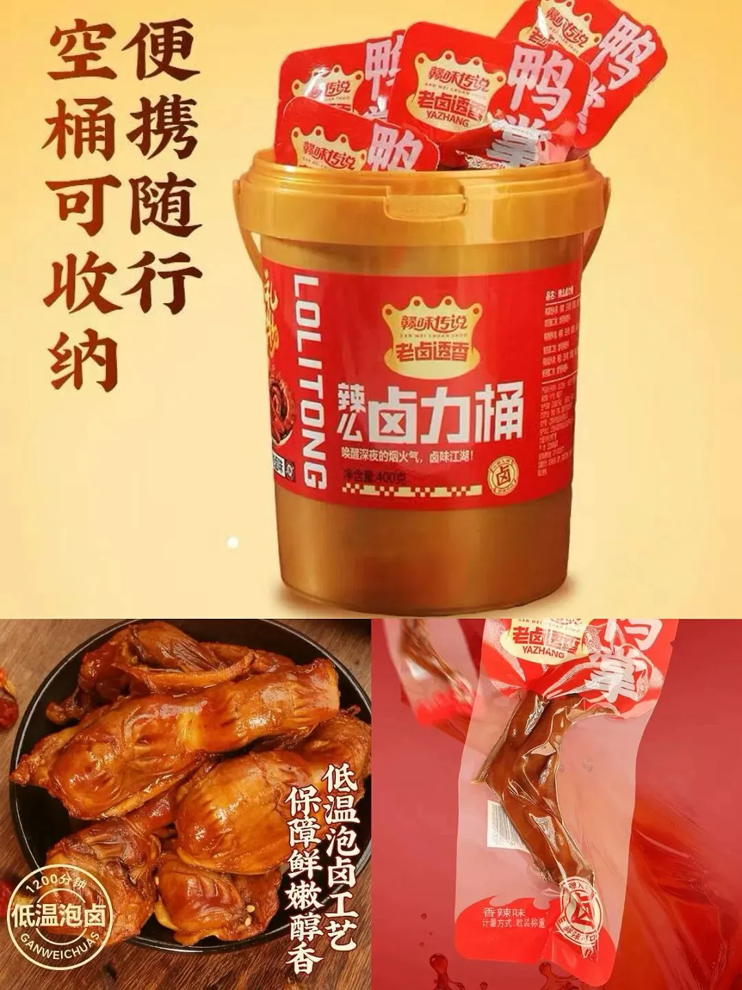 适合渠道:全渠道,样品少量不收费,产品介绍:1.赣味传说老卤鸭掌是江西的风味特色小吃,精选优质养殖产地原料制成。2.制成鸭掌小零食后,采用独立真空包装,方便随身携带,休闲娱乐,上班解馋,追剧必备,是随时可食的美味。