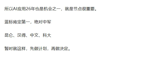 另外说说AI应用,目前有扩散,接今日早盘商业航天跳水,Ai应用承接不错,可以高开一线,今日早盘就说了,但大部分不能追了,等一次大分化。