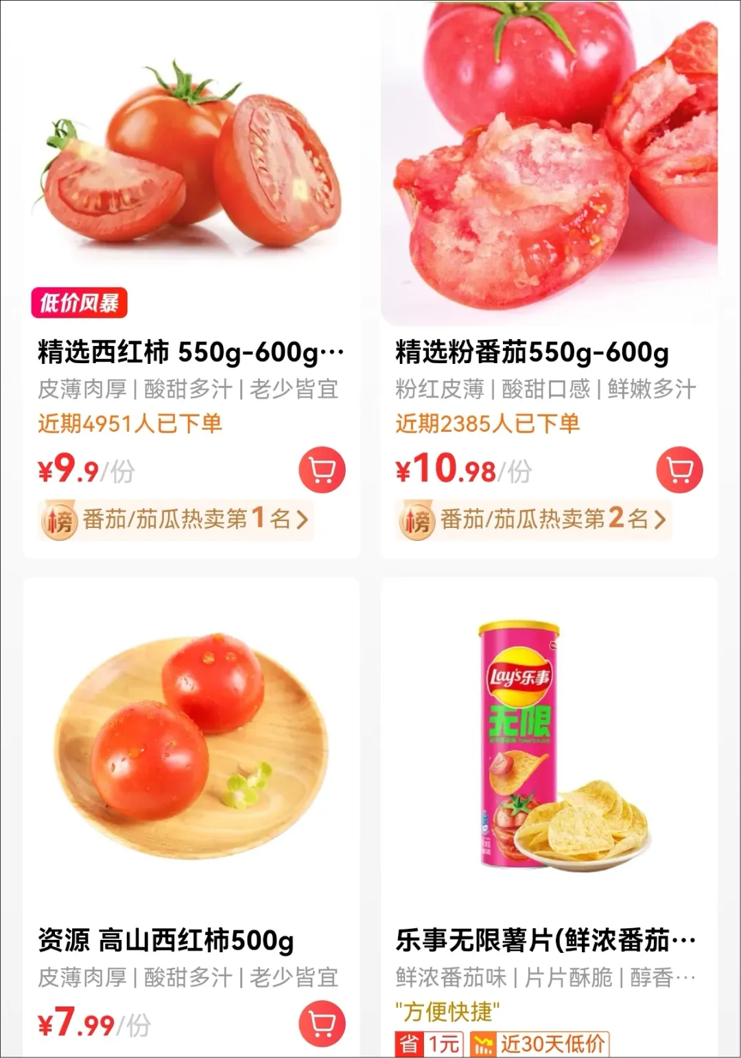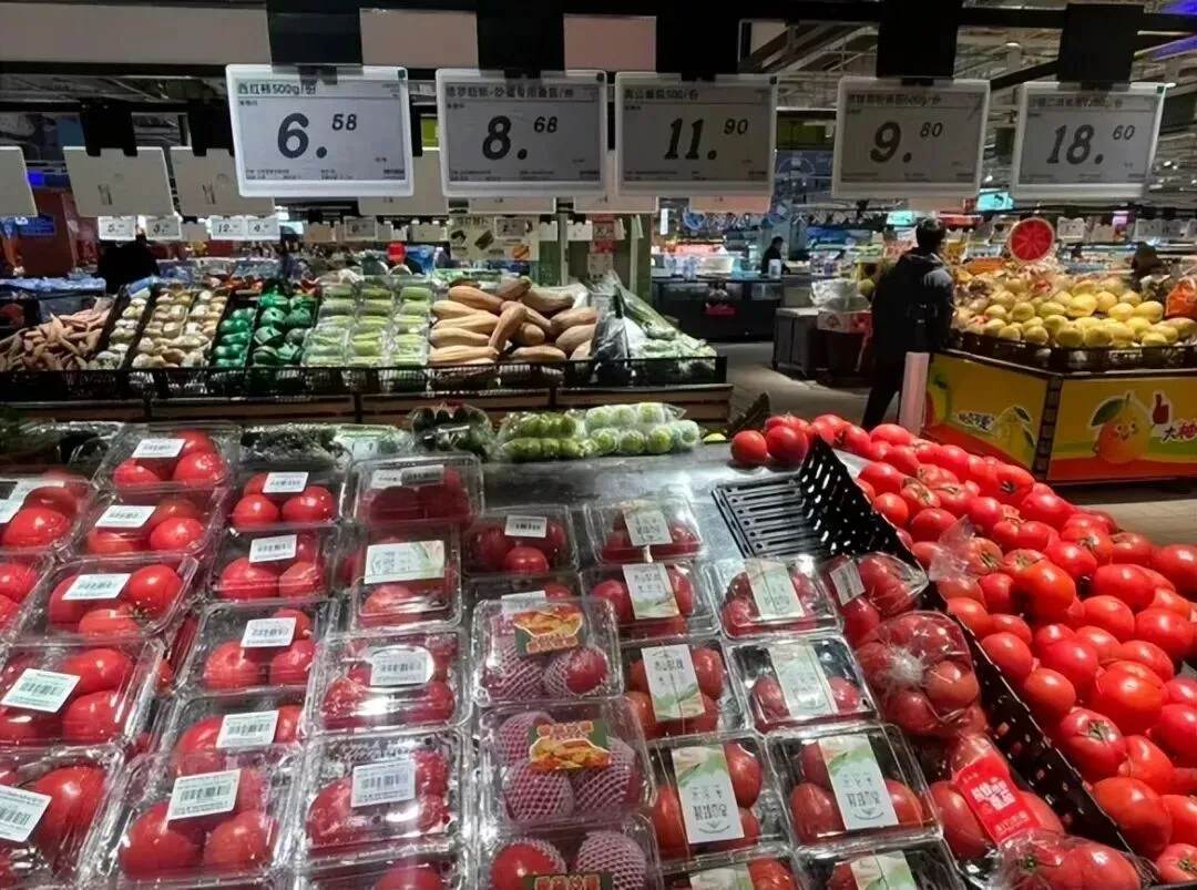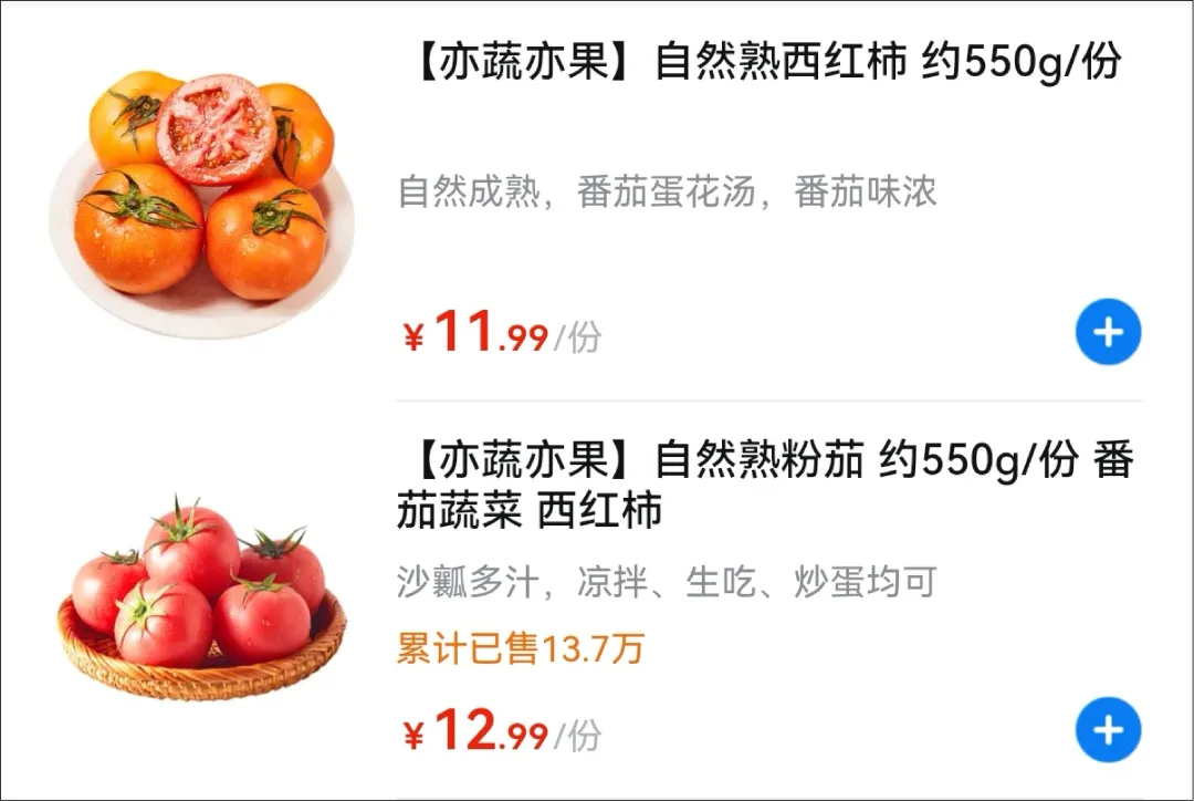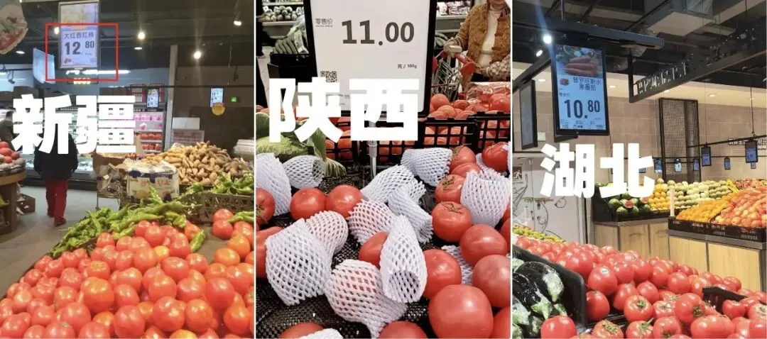 而在桂林一些大型超市,西红柿的身价不知道什么时候,居然已经“奔十”了:大润发精选西红柿550-600g,标价9.9元/份;永辉超市吾悦广场店红西红柿9.9元/500g,粉西红柿则相对便宜一些,为7.99元/500g;沃尔玛万象城店自然熟西红柿11.99元/约550g,番茄蔬菜西红柿12.99元/份。
