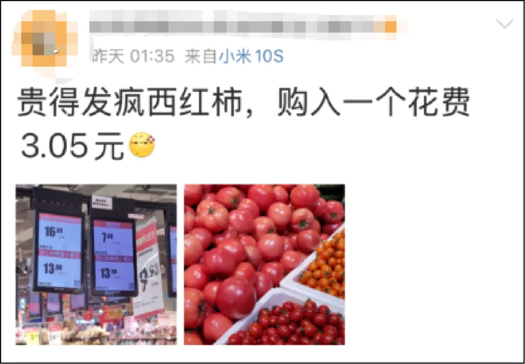 据了解,西红柿价格由去年年初时每斤仅1-2元价格,节节攀升至目前每斤5-6元,而一些线上超市平台价格甚至达到了每斤10元。不少网友吐槽:再这么涨下去,以后番茄炒蛋只敢放鸡蛋了!