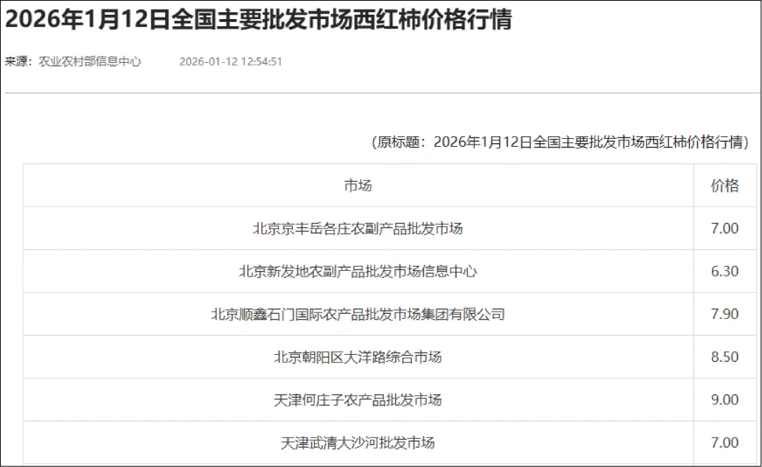 1月13日沃尔玛西红柿价格