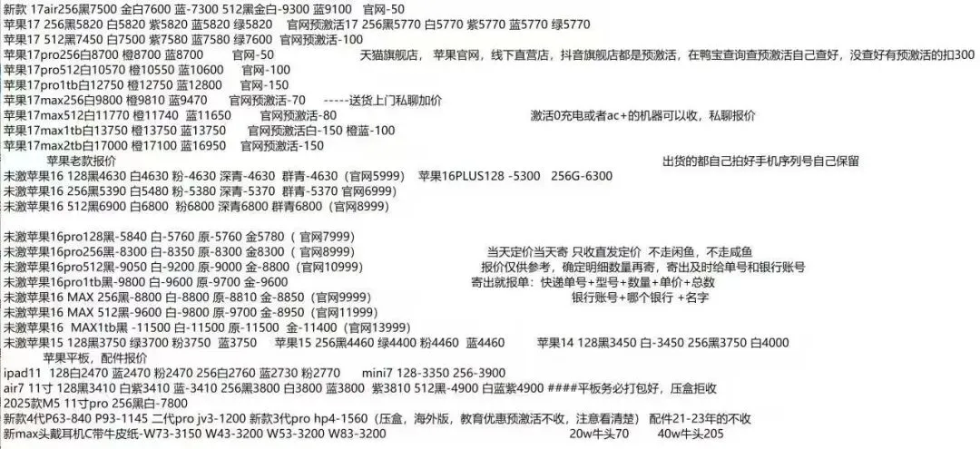 以上报价为深圳华强北参考收货价格,实际回收价格可能比报价差20-30元。